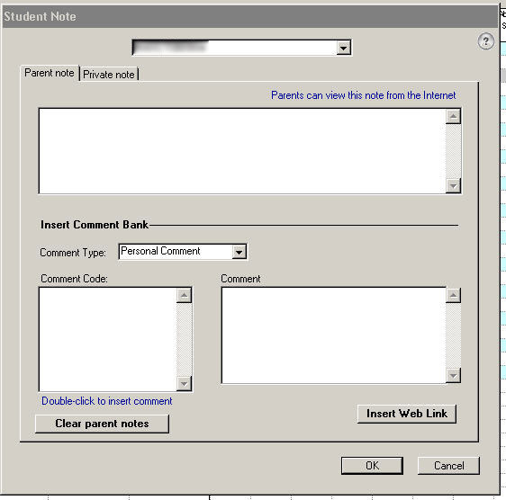 the "Parent Note" window.