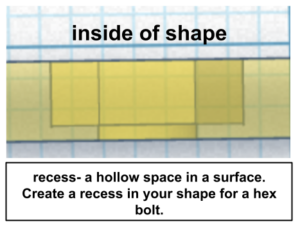 Recess for nut – use a hexagon to make a hole using these measurements in millimeters. The hole should fit FLUSH (flat) on the inside of the hole.