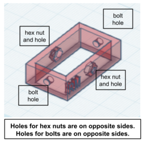 If your shape has only three sides than you pick which sides have holes for the hex nut and which sides have holes for the bolt.